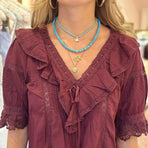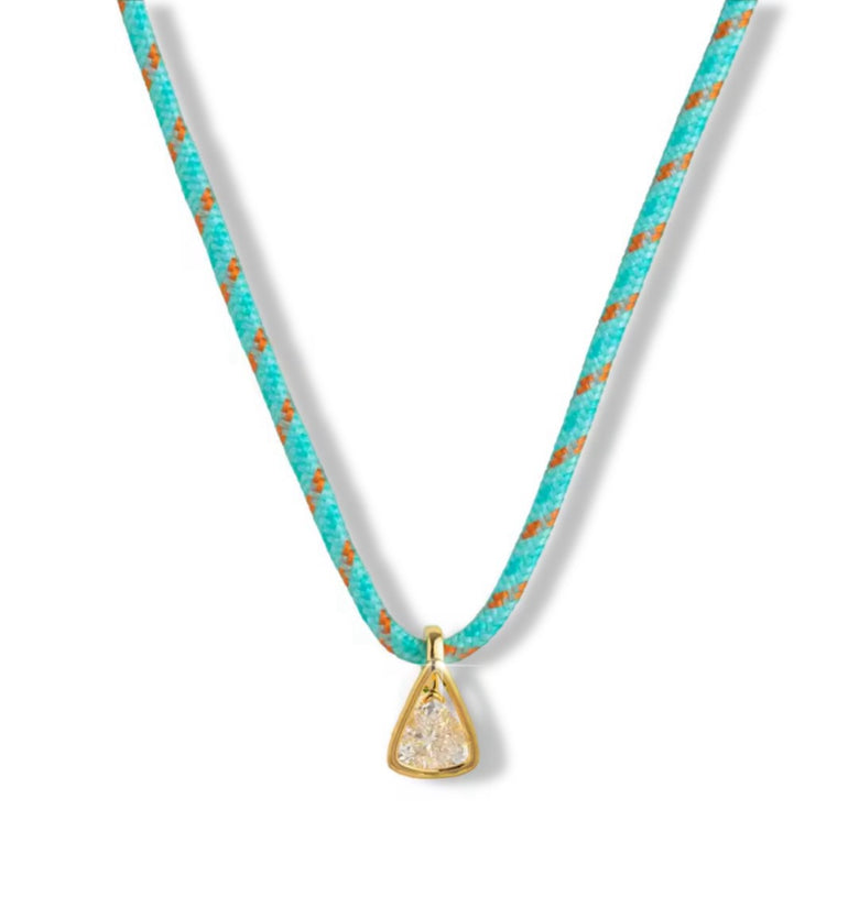 Embrace understated elegance with the Thea Necklace, a refined balance of sophistication and modern charm. The vibrant turquoise cord adds a fresh, contemporary touch, while the 22k gold-plated pendant — featuring a radiant cubic zirconia stone — captures the light in a delicate, mesmerising sparkle.